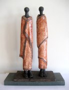 Raku sculpture of two Samburus